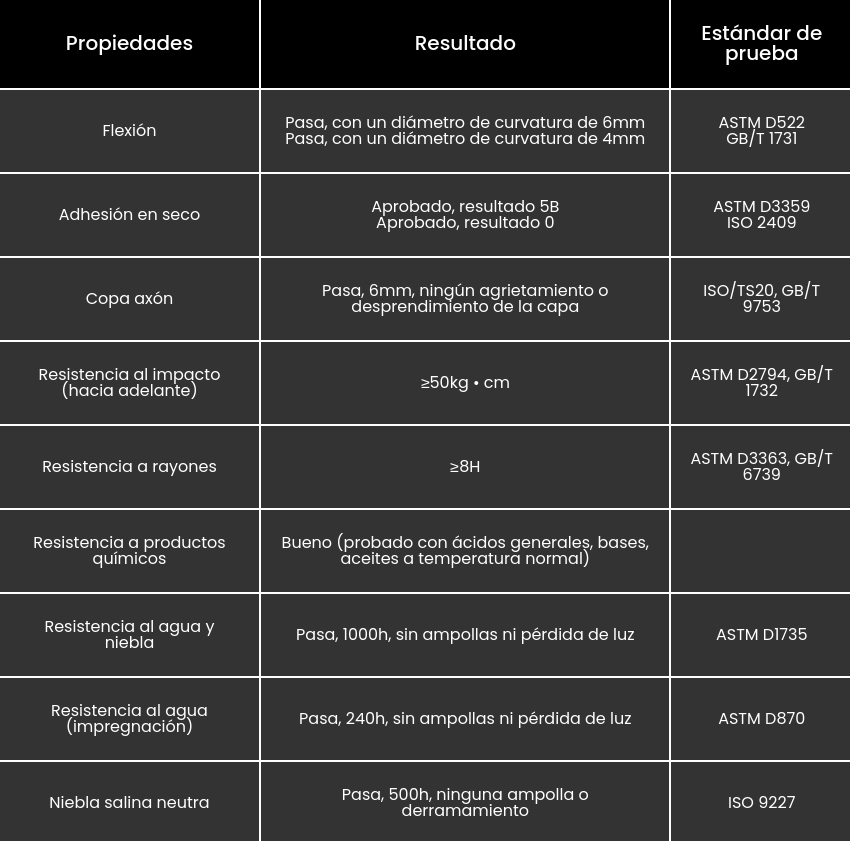 Características del producto | – Tipo químico: tipo de poliéster. |